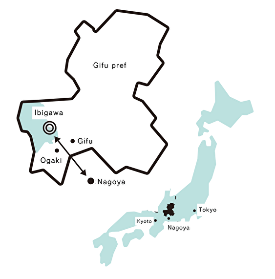 (JR [Nagoya Station] – [Ogaki], Yoro Railway [Ogaki] – [Ibi], 10 min. by car)