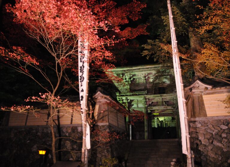 約1200年前に最澄が建てたと伝わる古いお寺です。薬師如来や、修行で命を捧げた僧「妙心上人」の遺体など貴重な文化財が多く残ります。秋には400本の紅葉が鮮やかに染まり、赤い橋と三重塔の景色がとても美しいです。静かに歴史を感じられる場所です。